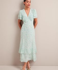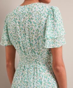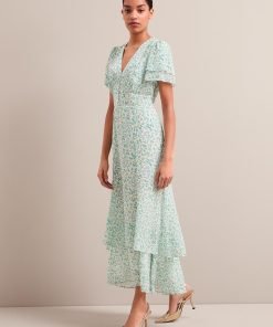 Lotta Gold Metallic Fil Coupé Maxi Dress – Green Yellow Trailing Feather Print